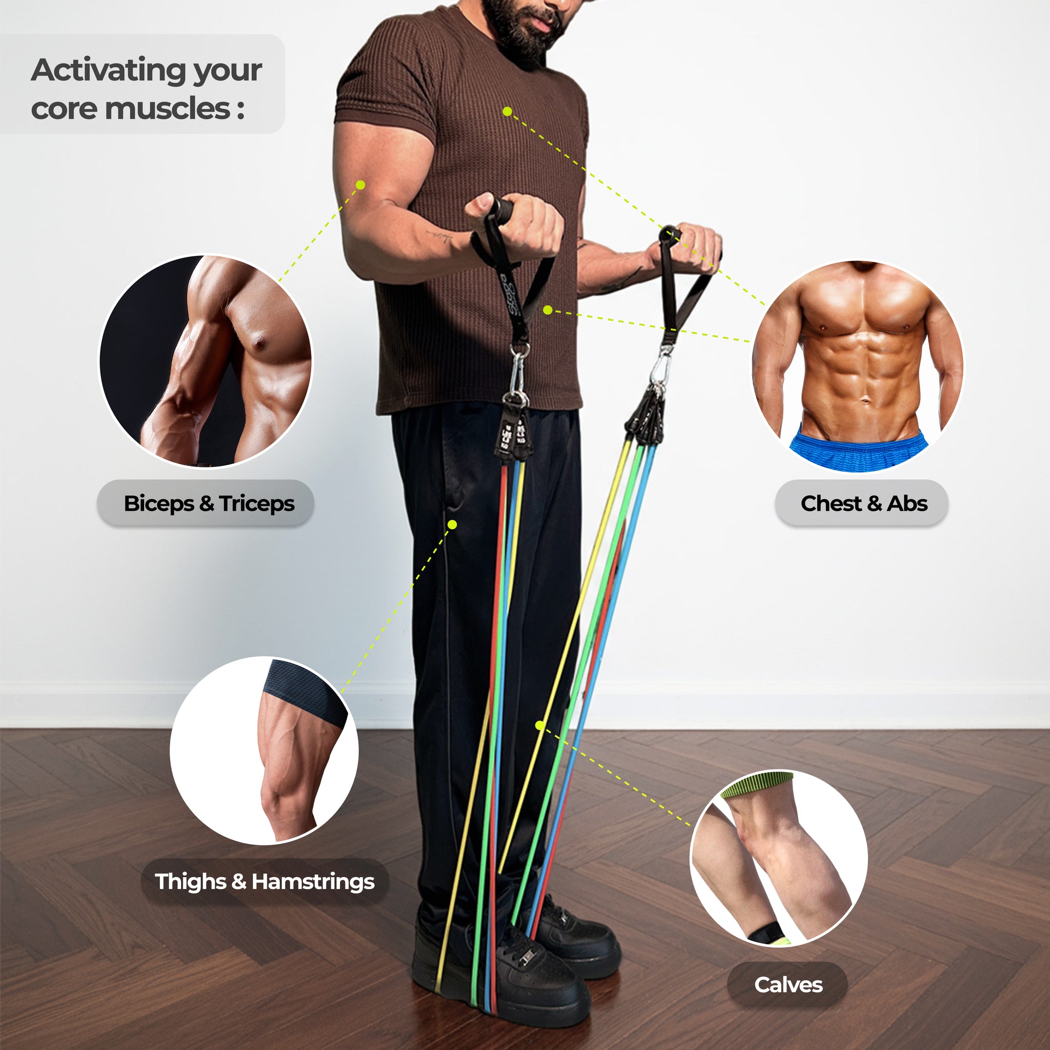 The Stoga 11-in-1 Resistance Training Kit is your all-in-one solution for strength, endurance, and flexibility training.