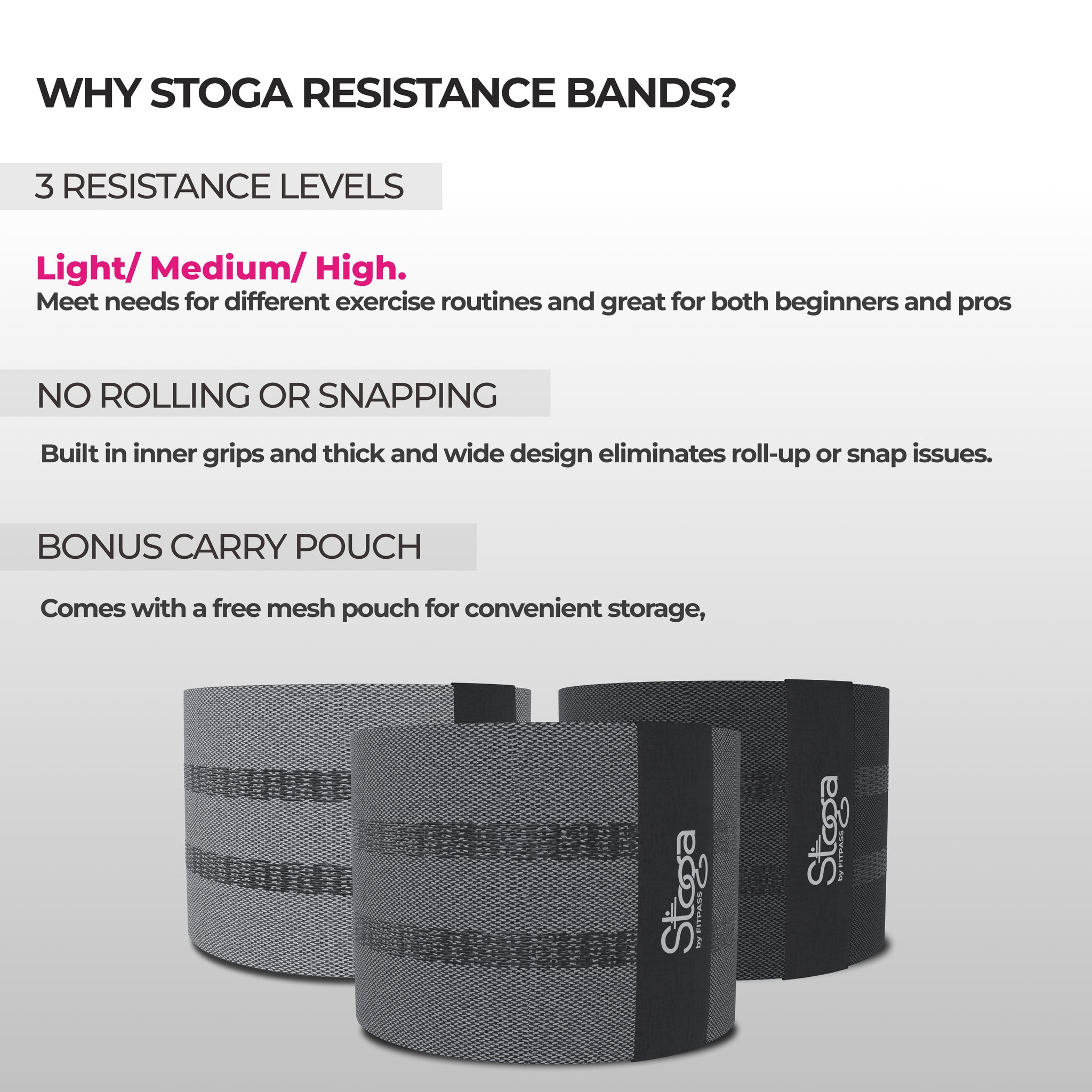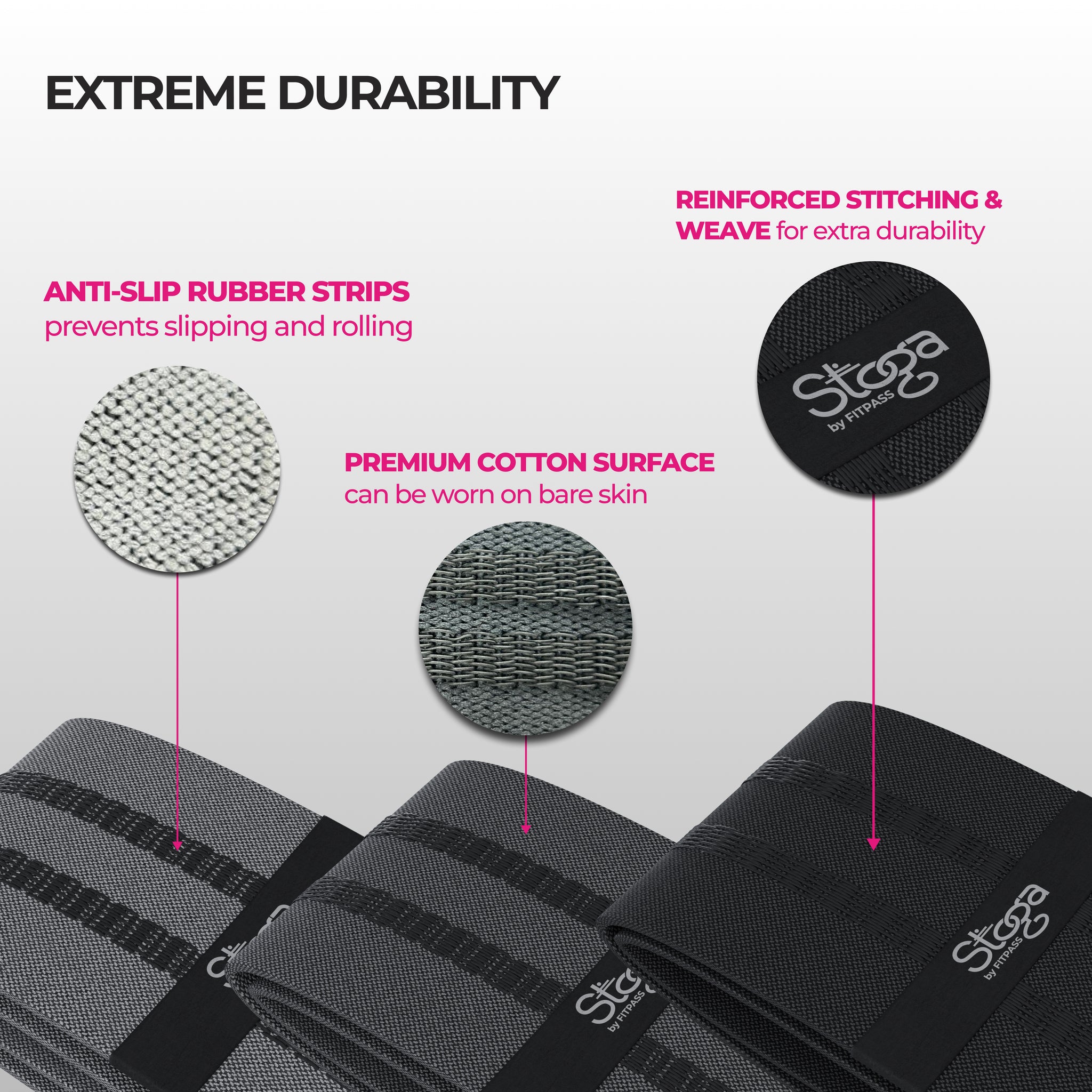 The Stoga Set of 3 Fabric Hip Loop Bands is designed to enhance lower body workouts with comfort and durability.